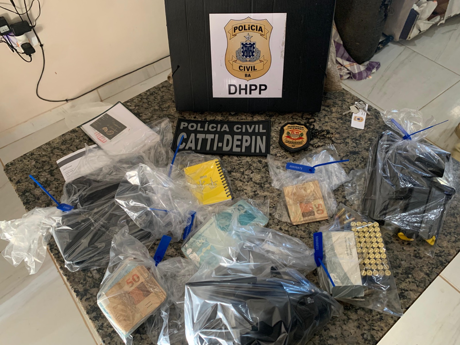 A diligência foi realizada em um bairro de Salinas, em cumprimento a um mandado de prisão e de busca e apreensão. No local foram apreendidas uma pistola 9 mm, 58 munições, três celulares, uma câmera de videomonitoramento e uma quantia em dinheiro. O suspeito não tinha registro de posse de arma e, por isso, foi dada a voz de prisão.